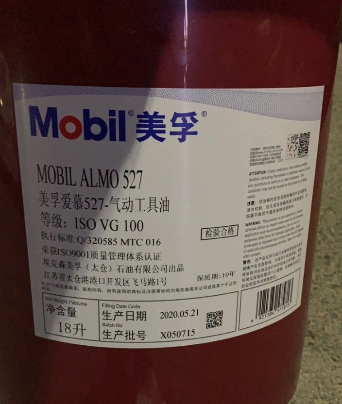 Mobil pneumatic tool oil love ALMO 525 527 529 VG46 100 No. 150 rock drilling lubricant