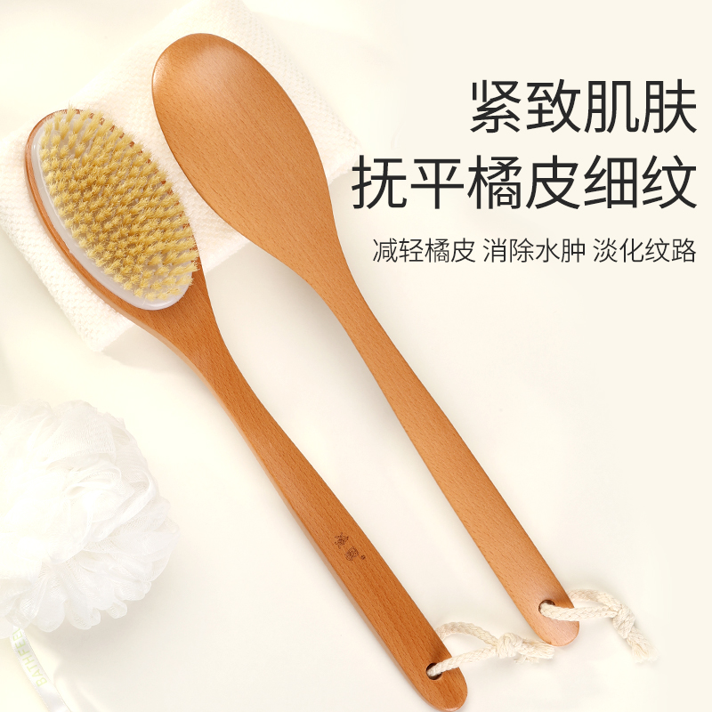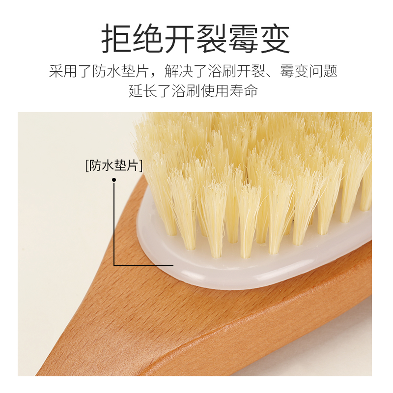 Handheld white jade bath brush (with waterproof mat for dry and wet use) Upgrade with beautiful body dry brush (s-grade pig mane lengthened 3cm) plus hard-to-body dry brush (plant fiber cosco)
