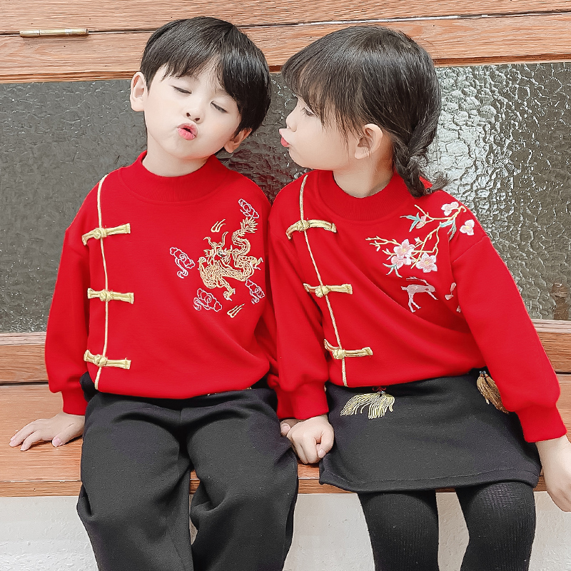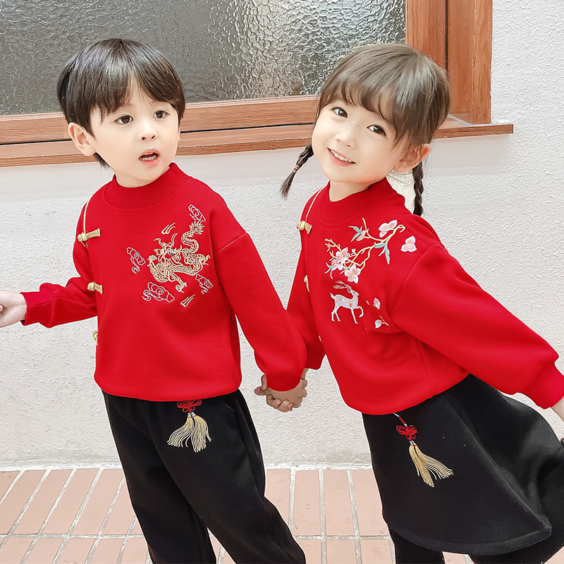 Children Plus Velvet Clothing Autumn Winter Clothing Girl Festive Clothing Boy Chinese Wind New Year Chinese Style Chinese New Year Dress Yoo Pie Sisters Clothes