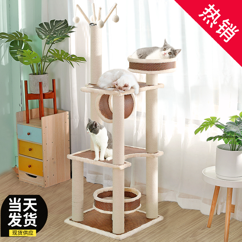 Cat climbing frame cat litter cat tree one small cat solid wood cat scratching column large cat scratching board does not occupy the cat tower cat jumping platform