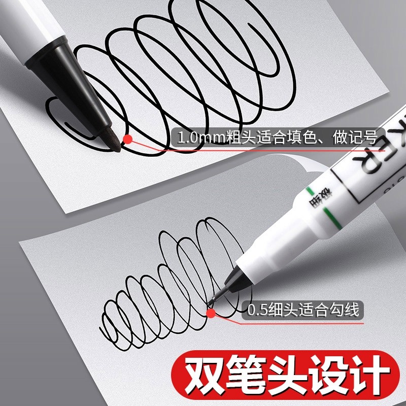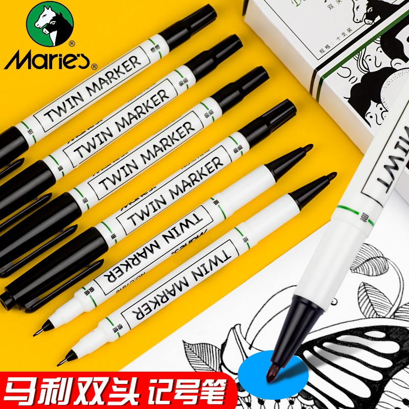 Marley black line pen oily quick-drying small double-headed marker pen children's art painting check stroke pen waterproof