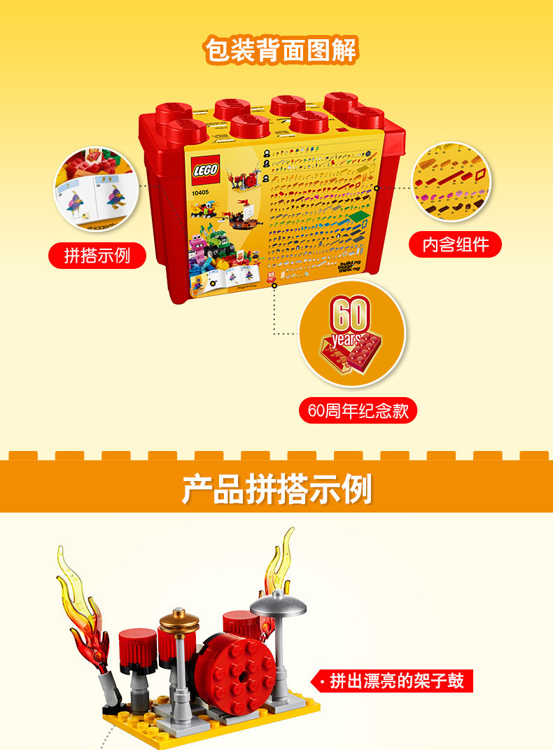 Lego LEGO 10405 Classic creative small grain building block bucket (60 Anniversary Souvenir) Mars Ren