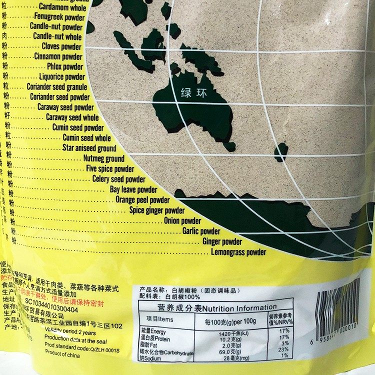 Green ring white pepper powder bag spice Chinese and Western food barbecue stew soup soup stir-fry food catering seasoning 500g
