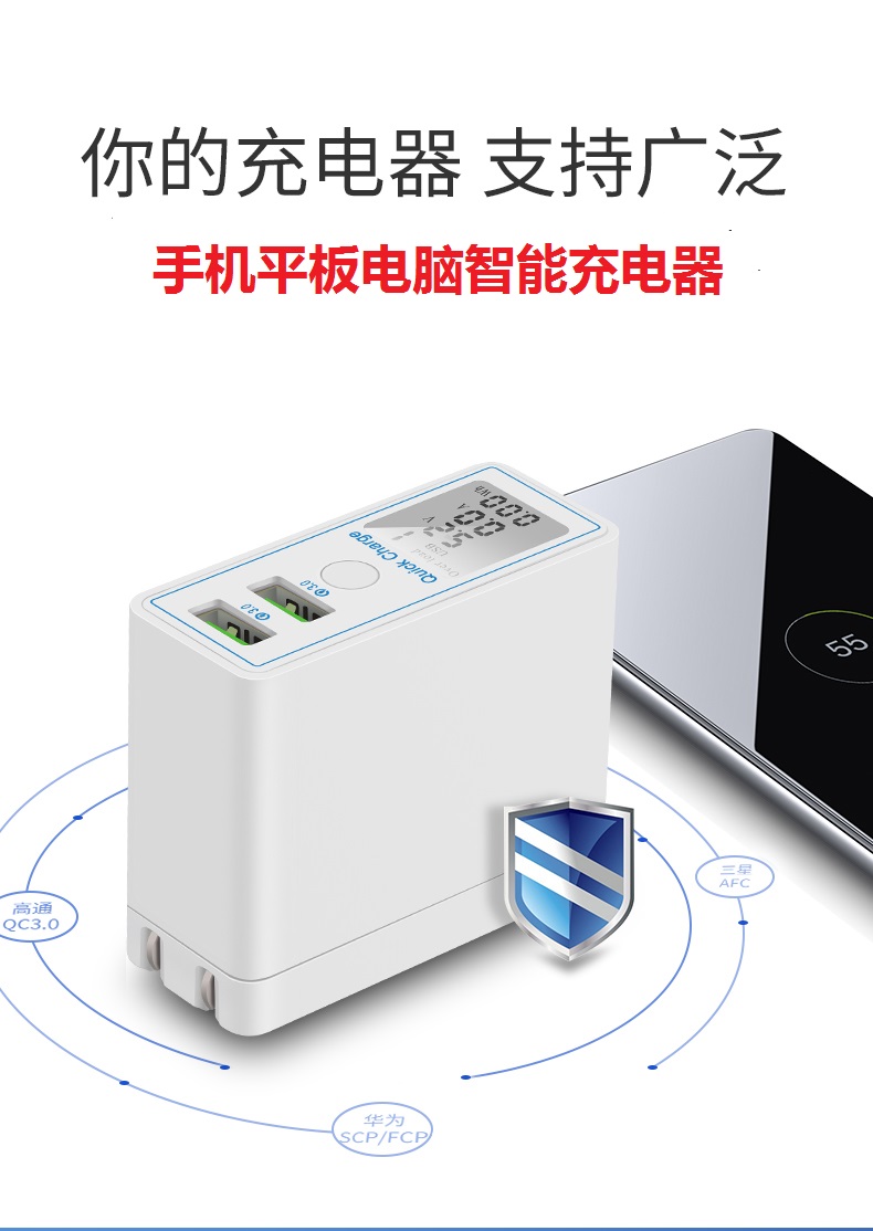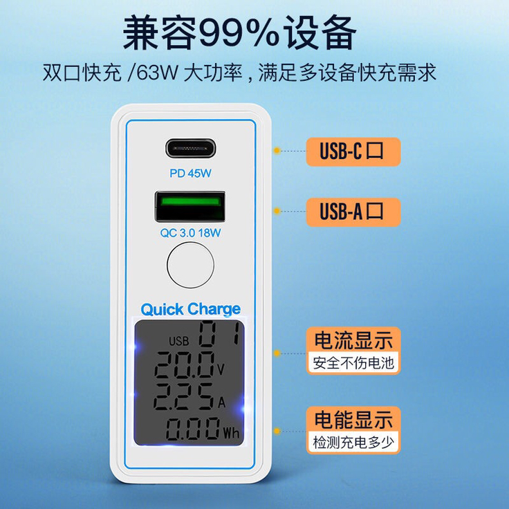 Multi-port fast charging digital display flat panel PD45w Android fast charging mobile phone QC3 0 charging head portable high-power charging pile
