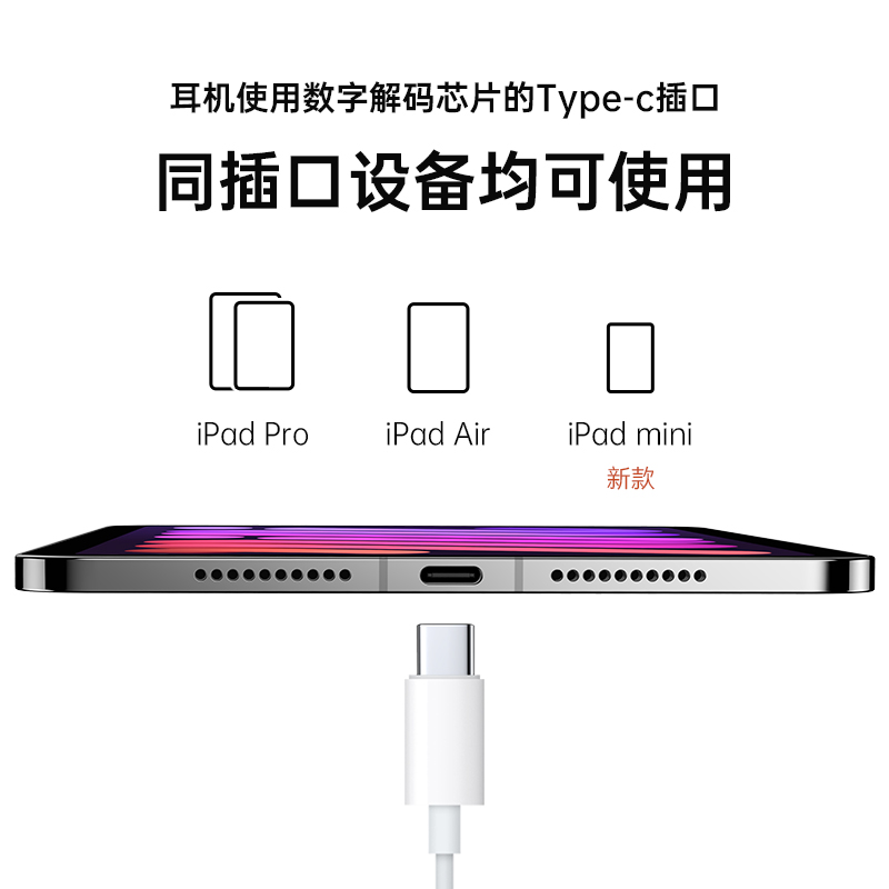 Original typec headphones apply Apple flat ipad mini6 air4 pro wired 2021 round hole 8 generations