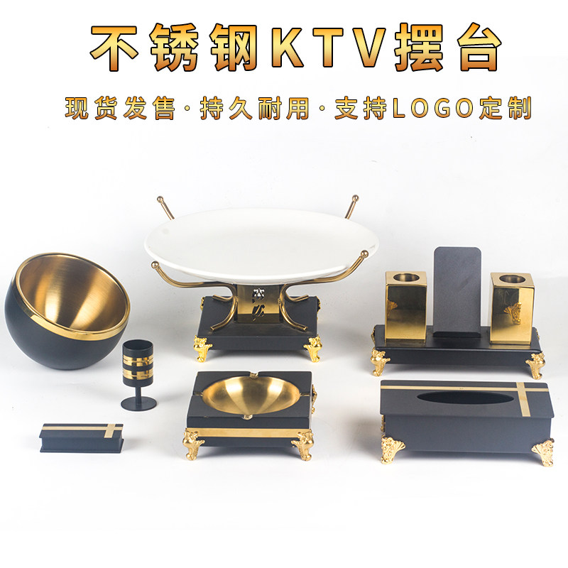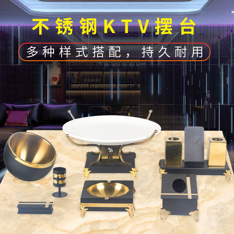 KTV set table supplies full set of high-grade stainless steel microphone stand ashtray fruit plate stand nightclub decoration