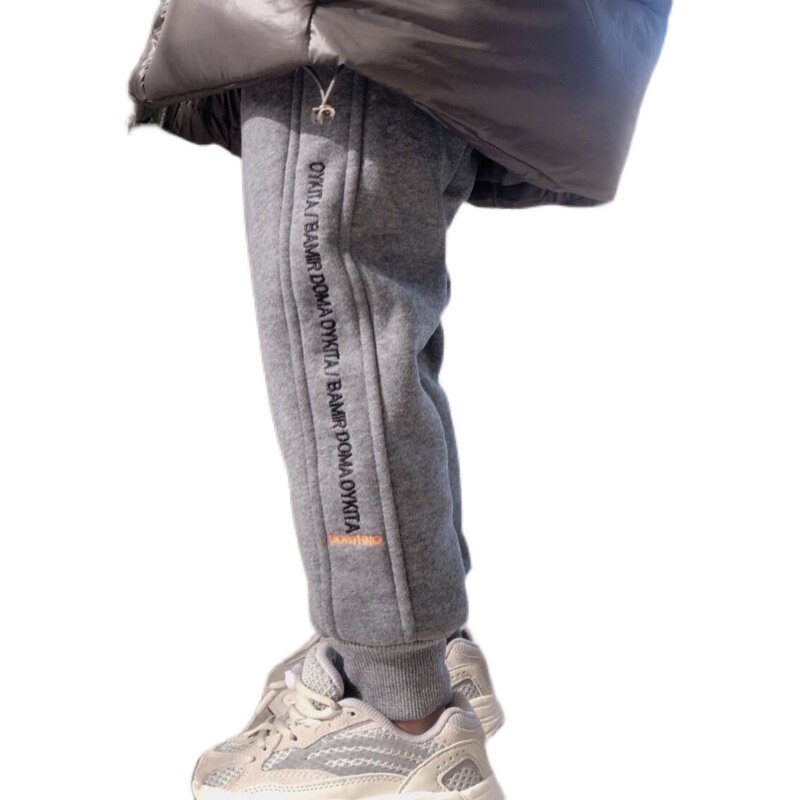 2022 new Korean version of children's clothing plus suede thickened sports pants boy close-up winter clothing cotton pants Cubist embroidery foreign