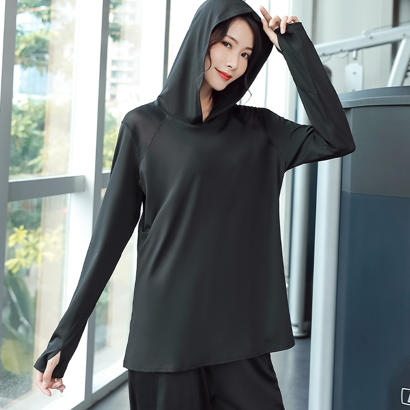 Large size yoga blouses woman fat mm loose sports fitness suit running suit with cap long sleeve hooded sweatshirt 200 catty