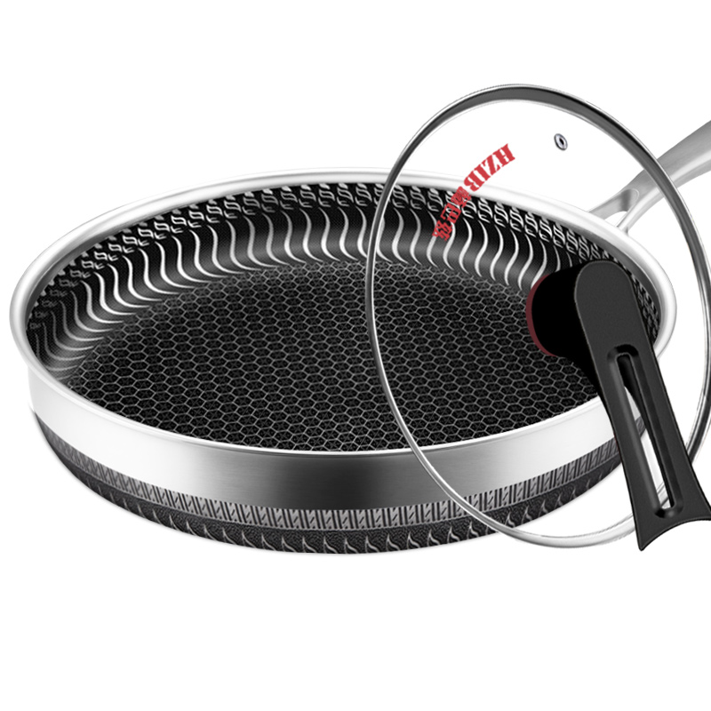 HZIB Herbaz Physical Nonstick Pan Bottom Pan 316 Stainless Steel Frying Steak Deep Frying Pan Frying Dual-use Frying Pan