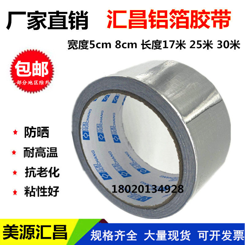 Huichang Aluminum Foil Adhesive Tape Whole Box 5cm8cm Aluminum Foil Paper High Temperature Resistant Insulation Adhesive Tape Solar Range Hood Pipe 25 m