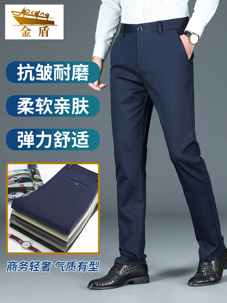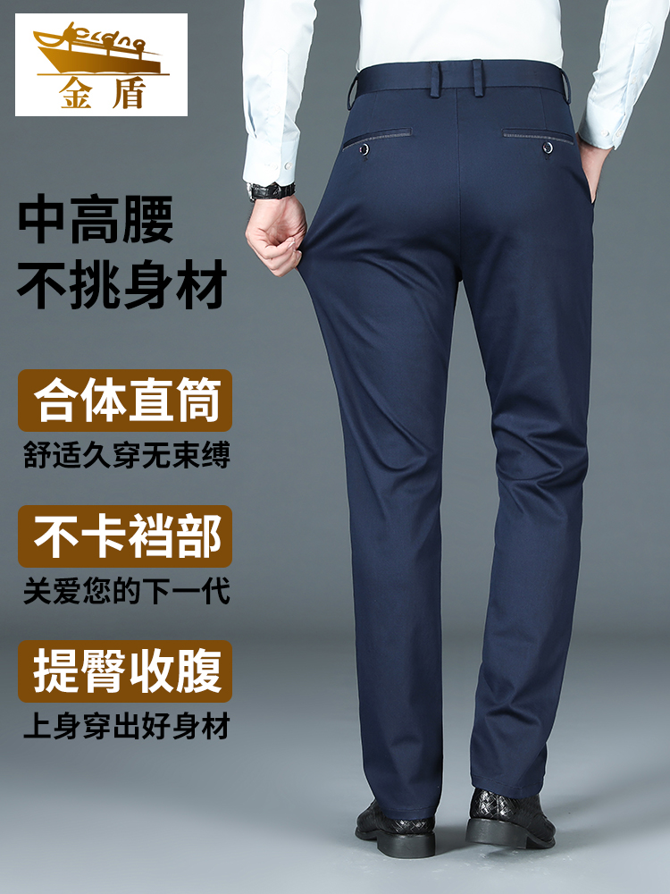 Golden shield dad pants autumn and winter middle-aged men's pants business casual pants men's straight high waist middle-aged and elderly men's trousers - Taobao