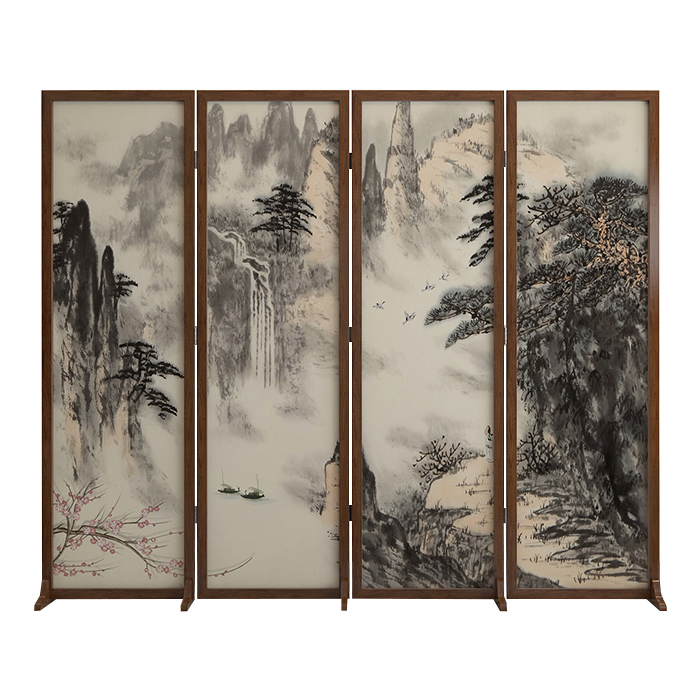 New Chinese-style solid wood screen partition living room bedroom shade home office custom landscape ancient wind mobile folding