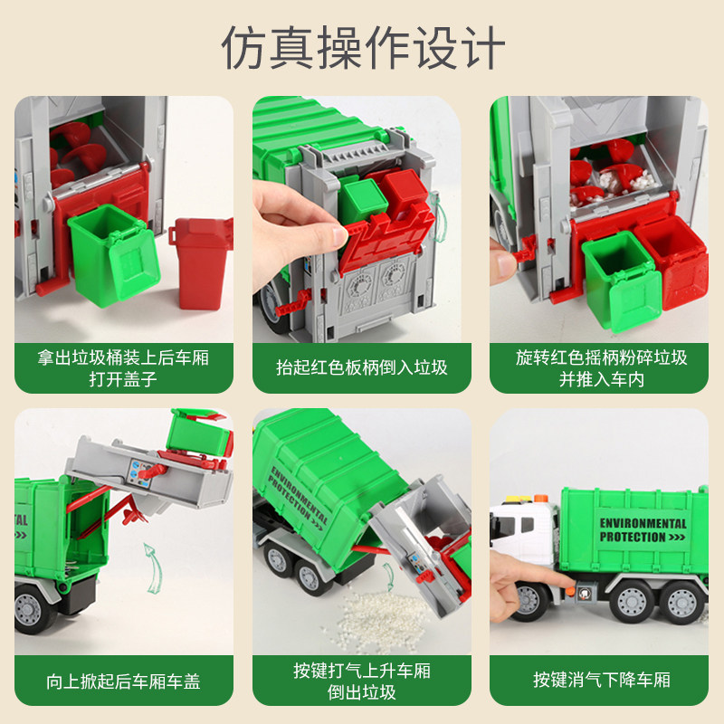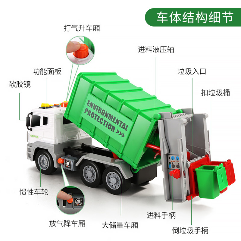 Huge garbage truck Qingyun sanitation children's toy road sweeping engineering car model emulation little boy baby