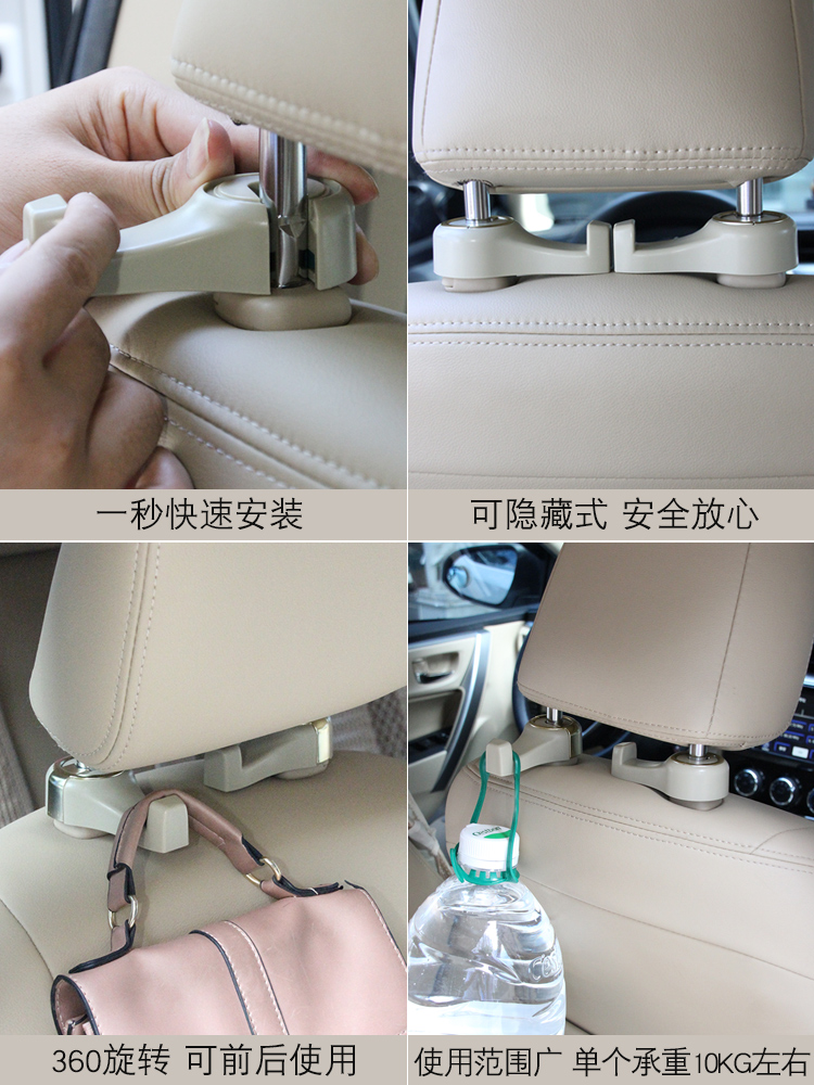 Car seat back hidden multi-function hook car supplies rear seat creative car hook