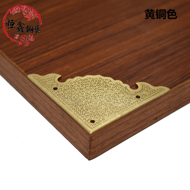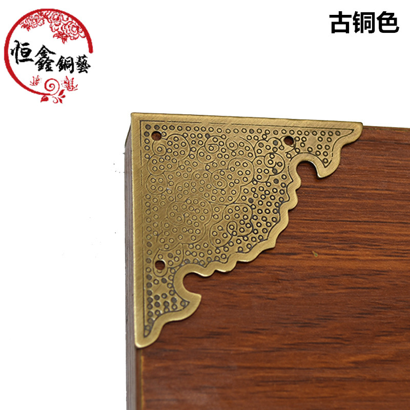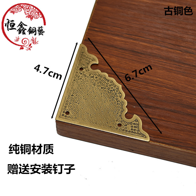Chinese antique pure copper wrapped corner decorative corner code corner flower auspicious cloud printing corner piece camphor wood box cabinet door copper corner guard thickening