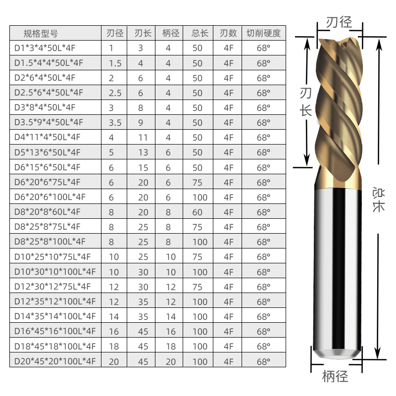 4-edge tungsten steel milling cutter Barchas coated and tempered steel special quenching steel 10 12 12 16 16 18 20mm