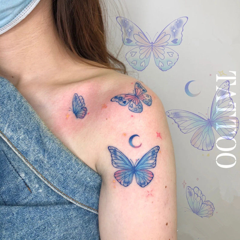 In tattoo female waterproof lasting little fresh butterfly series lockbone sexy realistic small pattern does not reflect the tide