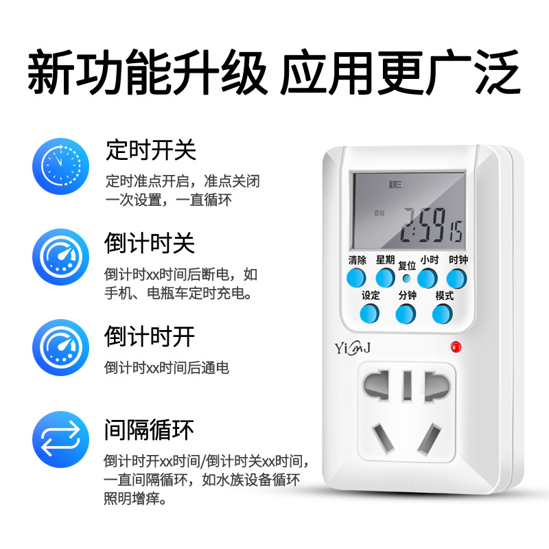 Electronic appointment time management power countdown socket Intelligent memory control timer switch socket