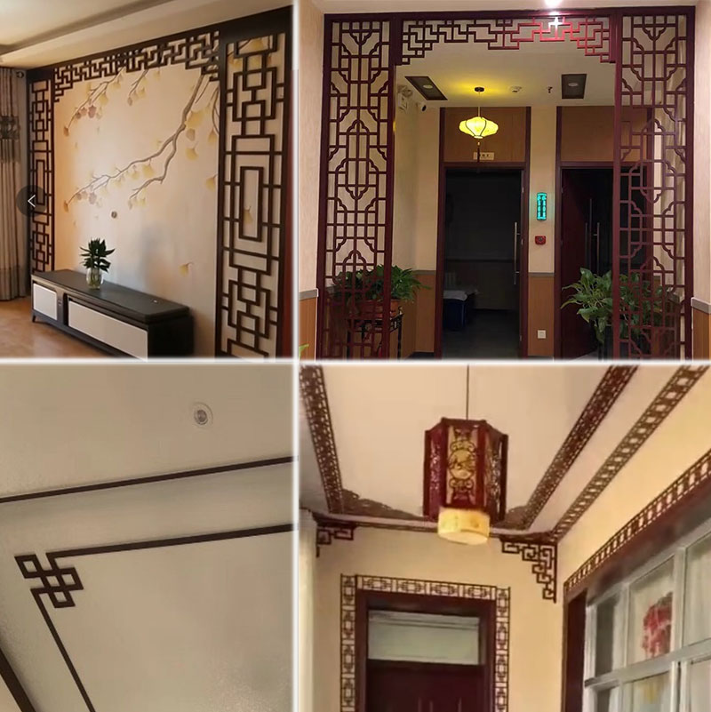 Chinese-style roof decoration lattice hollow solid wood lines back word pattern antique Chinese medicine hall decoration pvc lattice ceiling