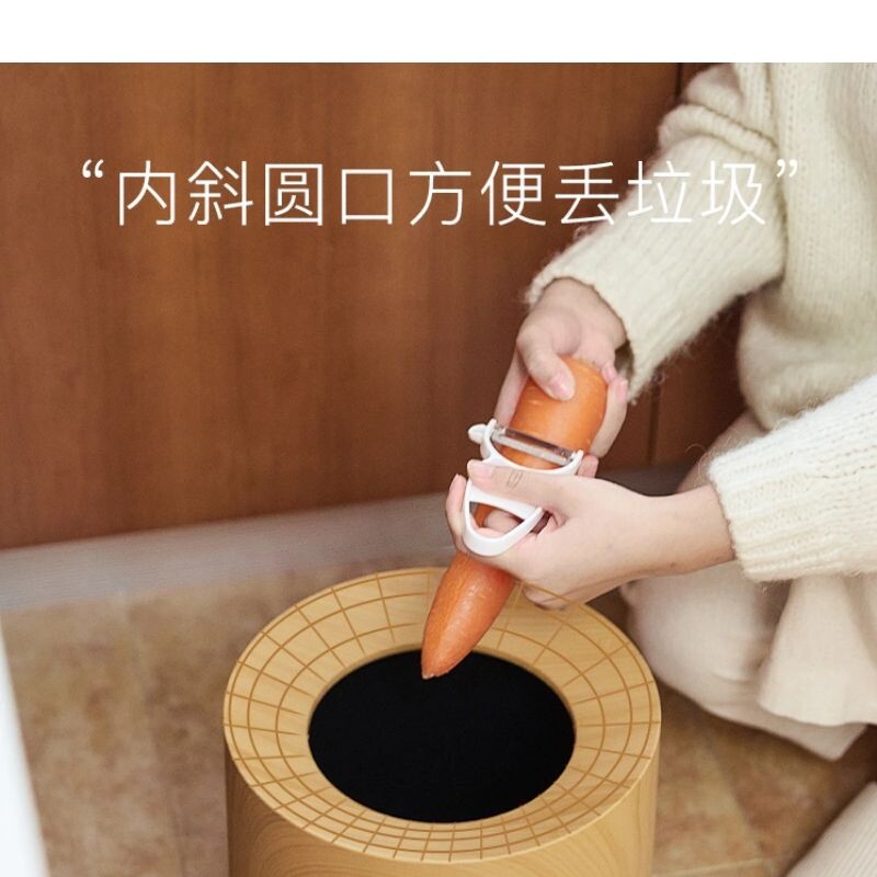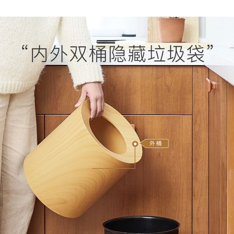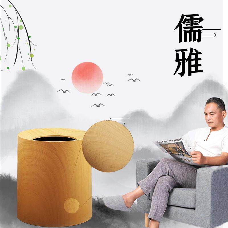 Living room double-layer Japanese-style imitation wood grain trash can simple household large retro hotel bedroom pressure ring creative paper basket