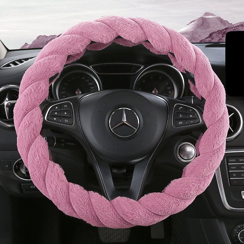 New Car Steering Wheel Cover Winter Short Plush Woman Warm Thickening Universal Cute Mesh Red Non-slip Car Handlebar Sleeve