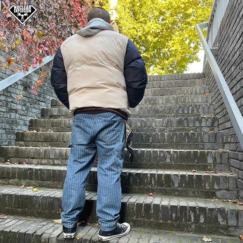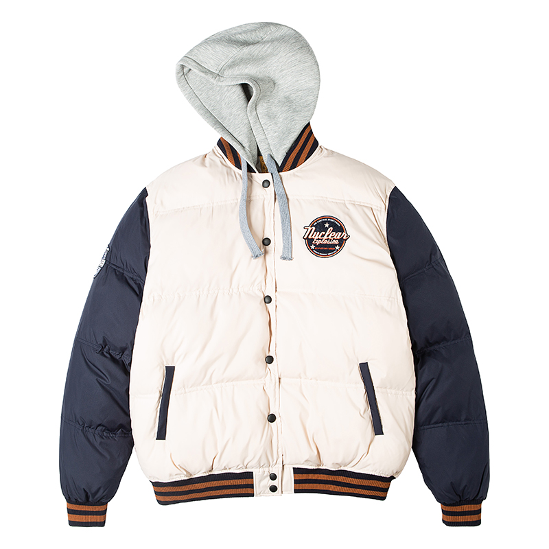 Nuclear explosion tide brand 2021 blue and white embroidered badge thickened warm loose casual cotton coat baseball collar hooded cotton coat