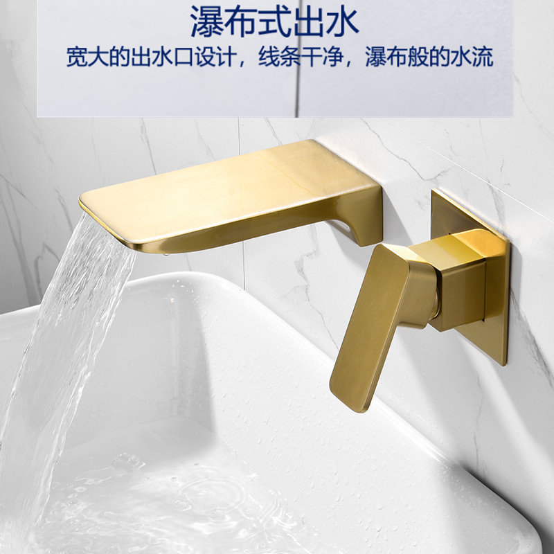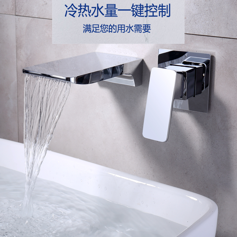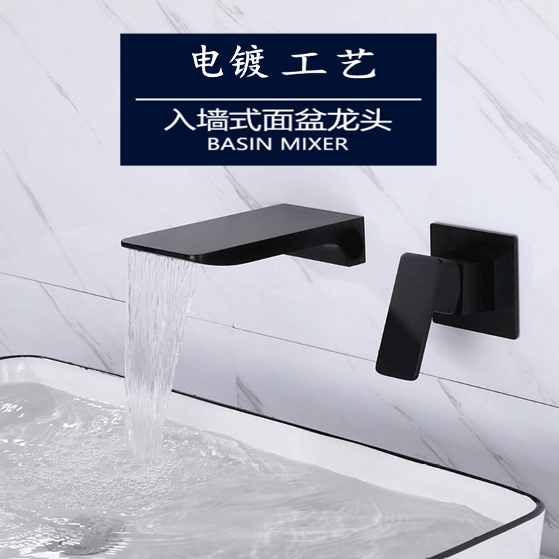 All-copper-entered wall waterfall faucet bathroom cold and heat pre-buried box dark embedded in wash basin black faucet