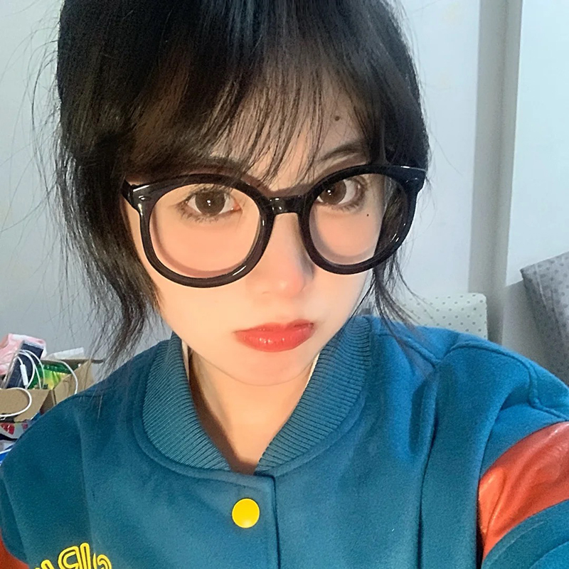 Xiaohongshu retro net red plain face thick black frame glasses frame female trendy big frame thin anti-blue light can be matched with myopia glasses