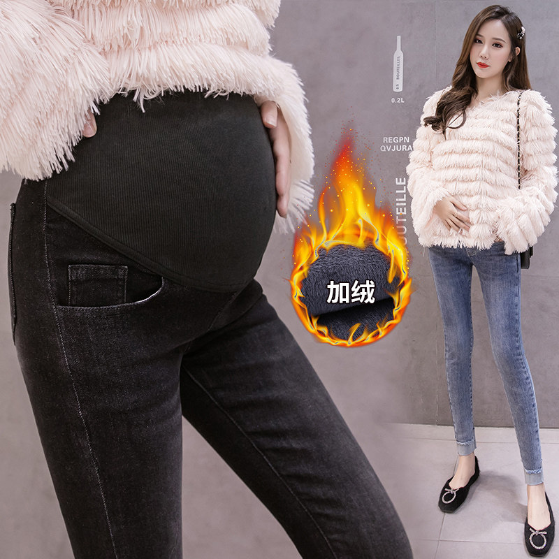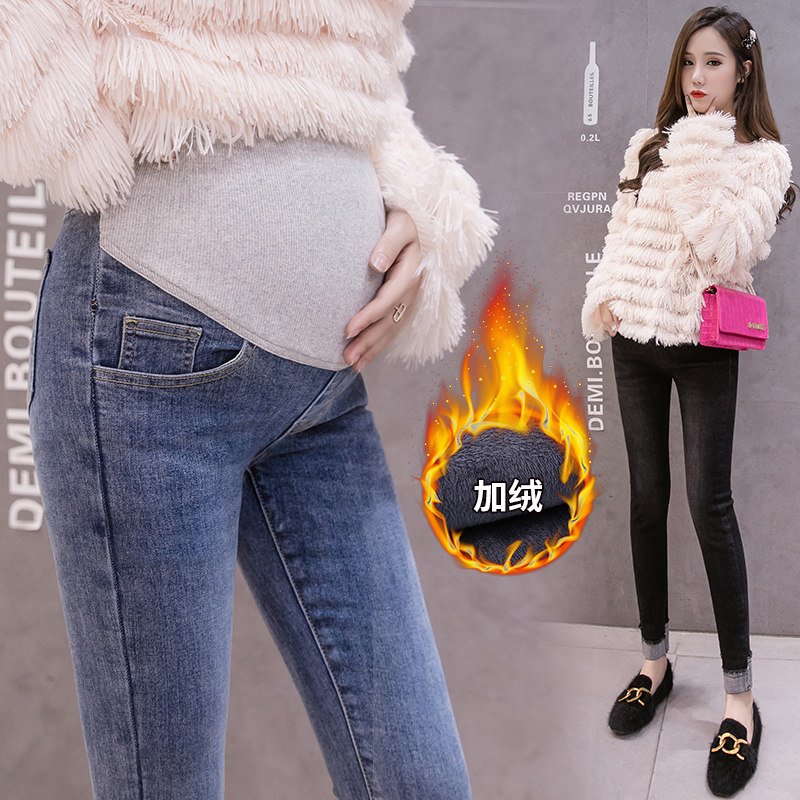 9701 pregnant woman plus suede jeans winter small foot denim Jeans Thickened warm pencil pants to wear for leisure