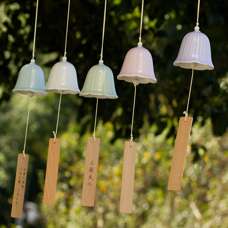 Custom handmade cute ceramic wind chime hanging ornament Japanese japanese style wind pendant bell door ornament creative girls birthday gift