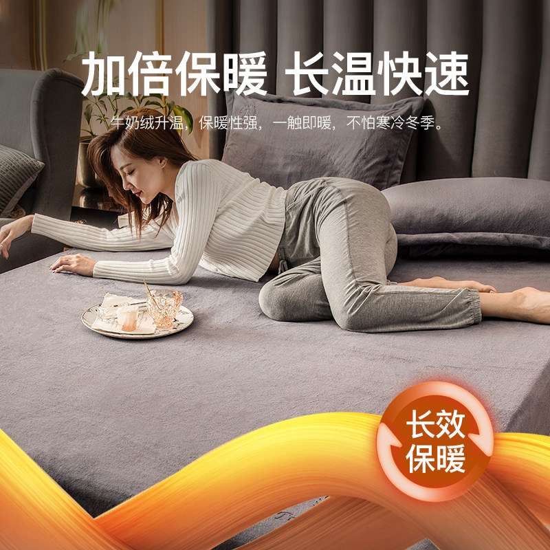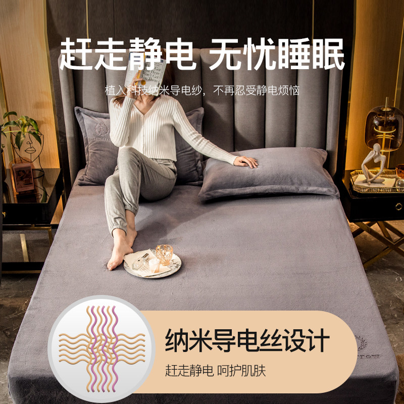 2021 New milk suede bed Ogasawara with velvet bed linen flange coral suede bed cover winter mattress protective sleeves