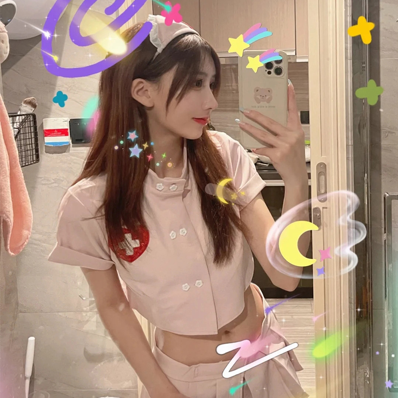 Halloween wearing a cosplay sexy patron suit corner color playing cos pink doctor's uniform seductive daughter