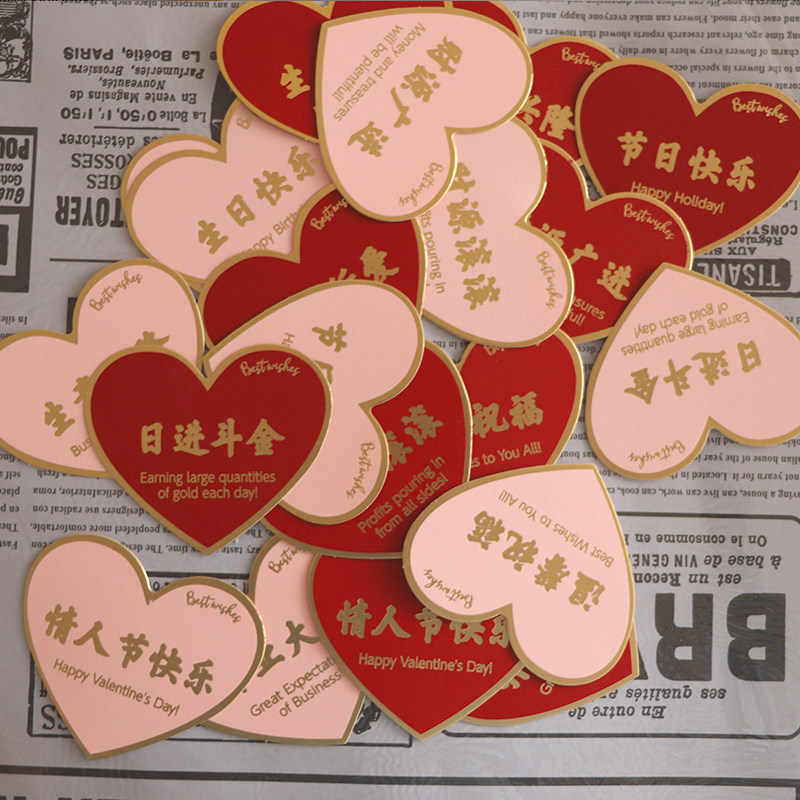 Flowers Opening Greeting Cards Happy Birthday Peach Hearts Card Holiday Blessing Red Floral Accessories Floral Bouquet Packaging Material