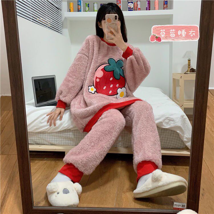2021 autumn and winter new Korean version of cute coral suede Rover palate pants set of female students outside wearing sweet and beautiful home clothes
