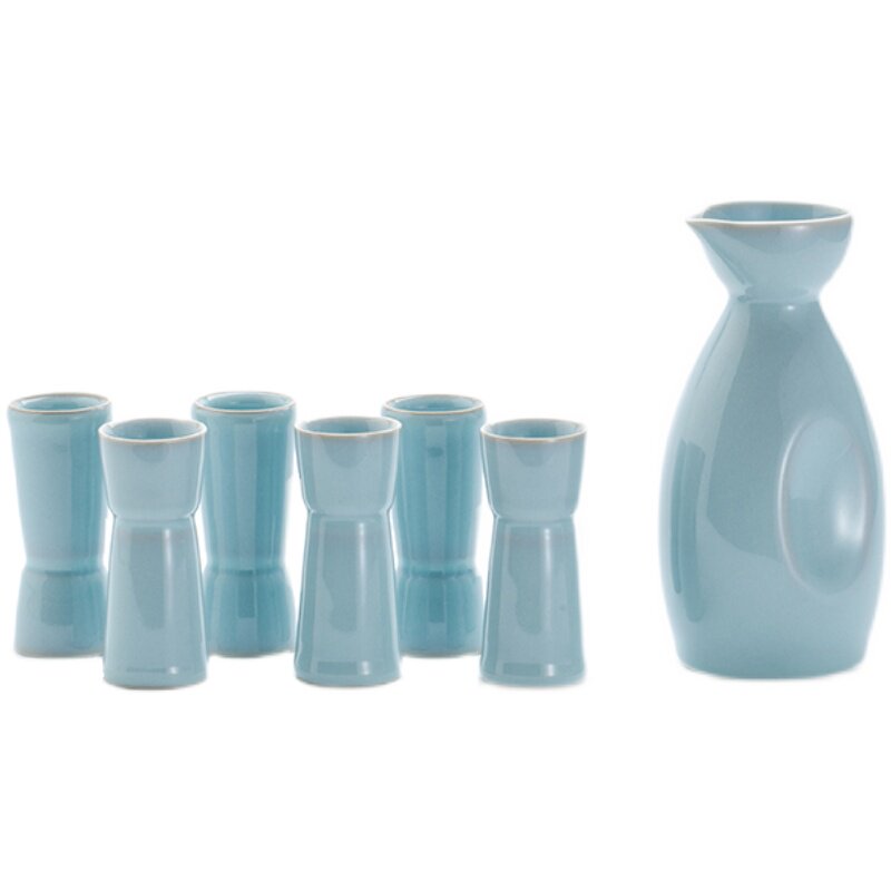 Rukiln Sky Blue Glaze Pure Handmade Wine Glass Wine Jug Wine set with small brute waist tea tea tea tea teapot teapot