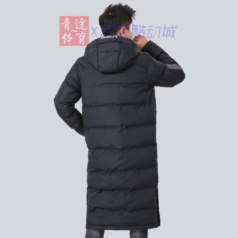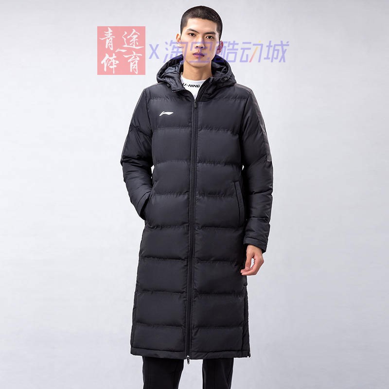 Li Ning cotton clothing 2022 new men's winter thickened warm anti-splash water over the knee long hooded windproof jacket
