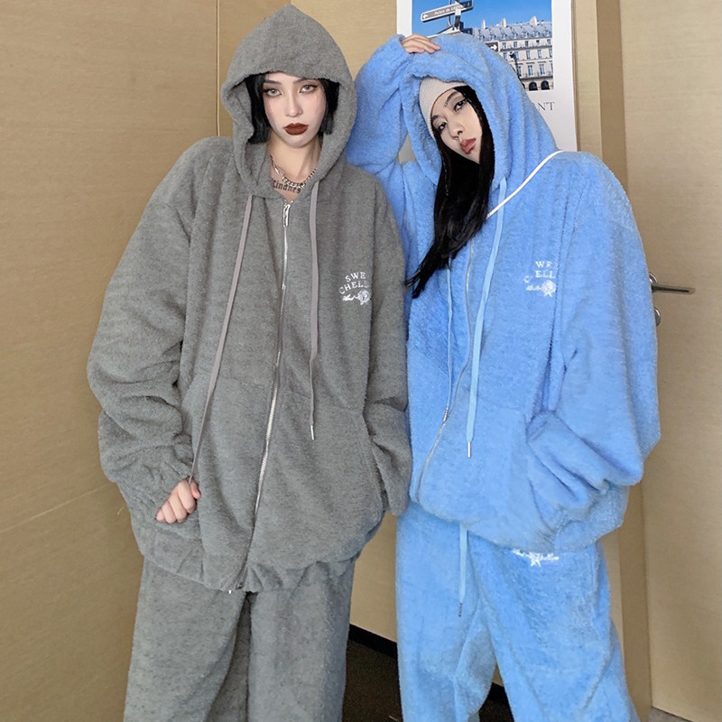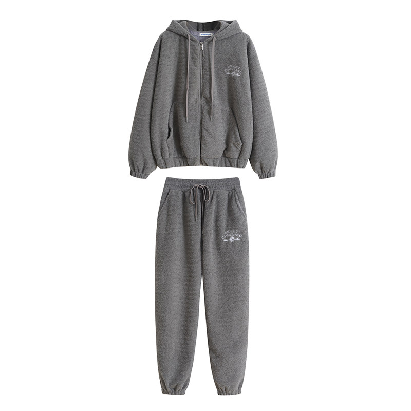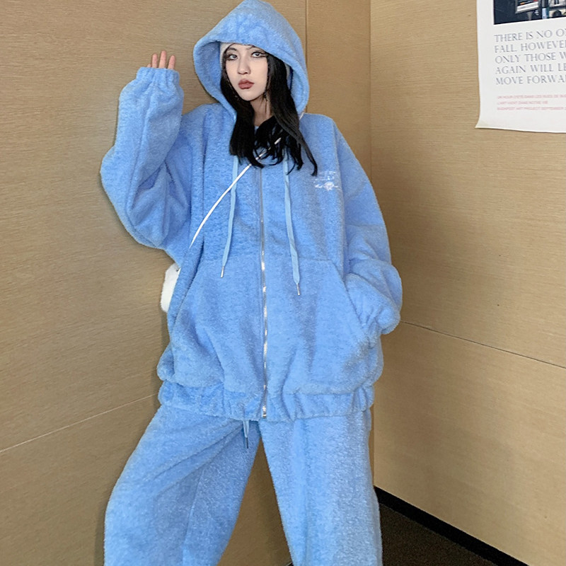 How to shake the grain suede thickened thick cotton T Wear Pants Sports Casual Suit Women Autumn Winter 2021 New Two Sets Tide