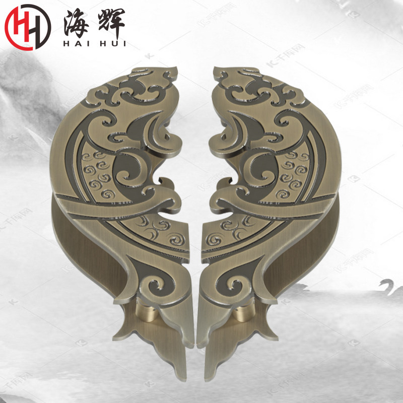 New Chinese antique copper fish door handle modern glass door semi-round handle push door and door handrail custom