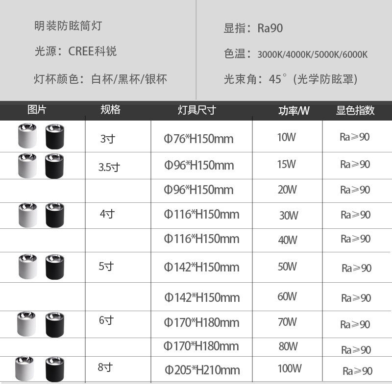 led surface mounted spotlight anti glare free drilling 50W80 watt 100W ceiling shopping mall super bright COB project surface mounted downlight