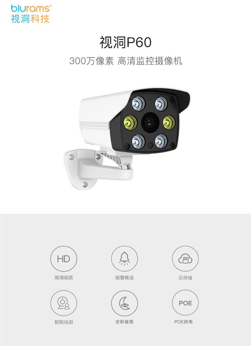 Visual hole P60 camera 3 million outdoor full-color HD mobile phone remote monitoring waterproof POE power supply and family