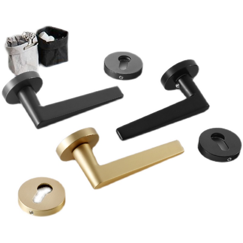 Home improvement room door lock universal indoor mute two-piece black wooden door lock copper core light luxury bedroom door handle