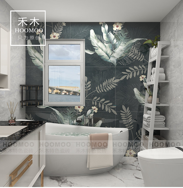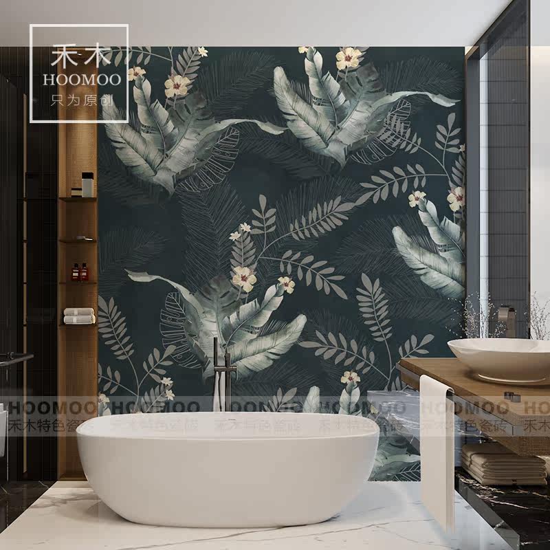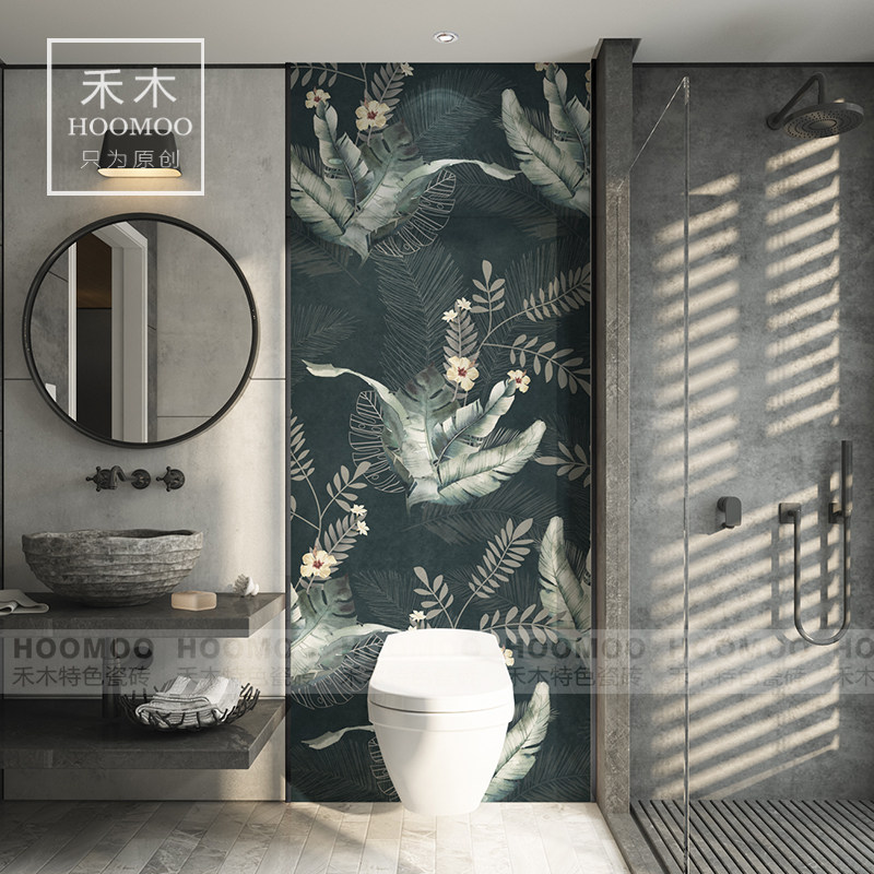 Hemu Foshan powder room tile toilet bathroom toilet background wall decorative art tile American modern plant