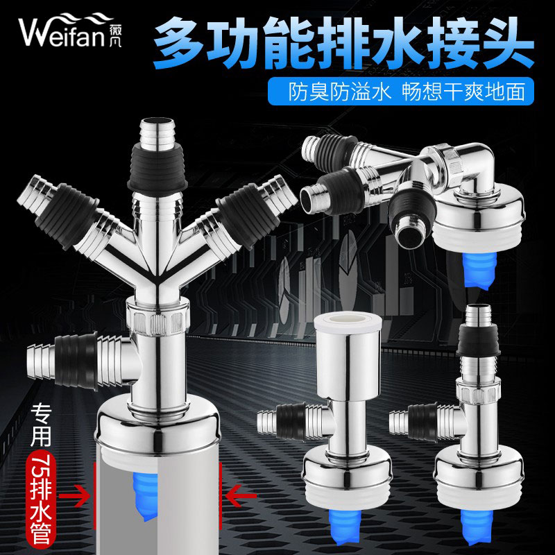 Washing Machine Drain Tee Kitchen Sewer Triple Head Through Drain Pipe Water Purifier Small Kitchen Treasure Connector Floor Drain Joint 75