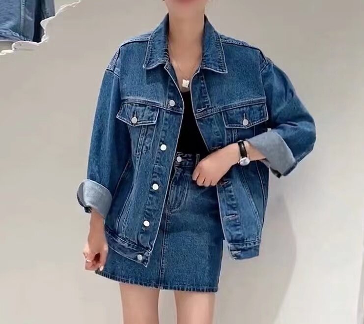 Spot first rich American sweet and cool back to school hot girl high-quality denim jacket + anti-walking light a word denim half skirt