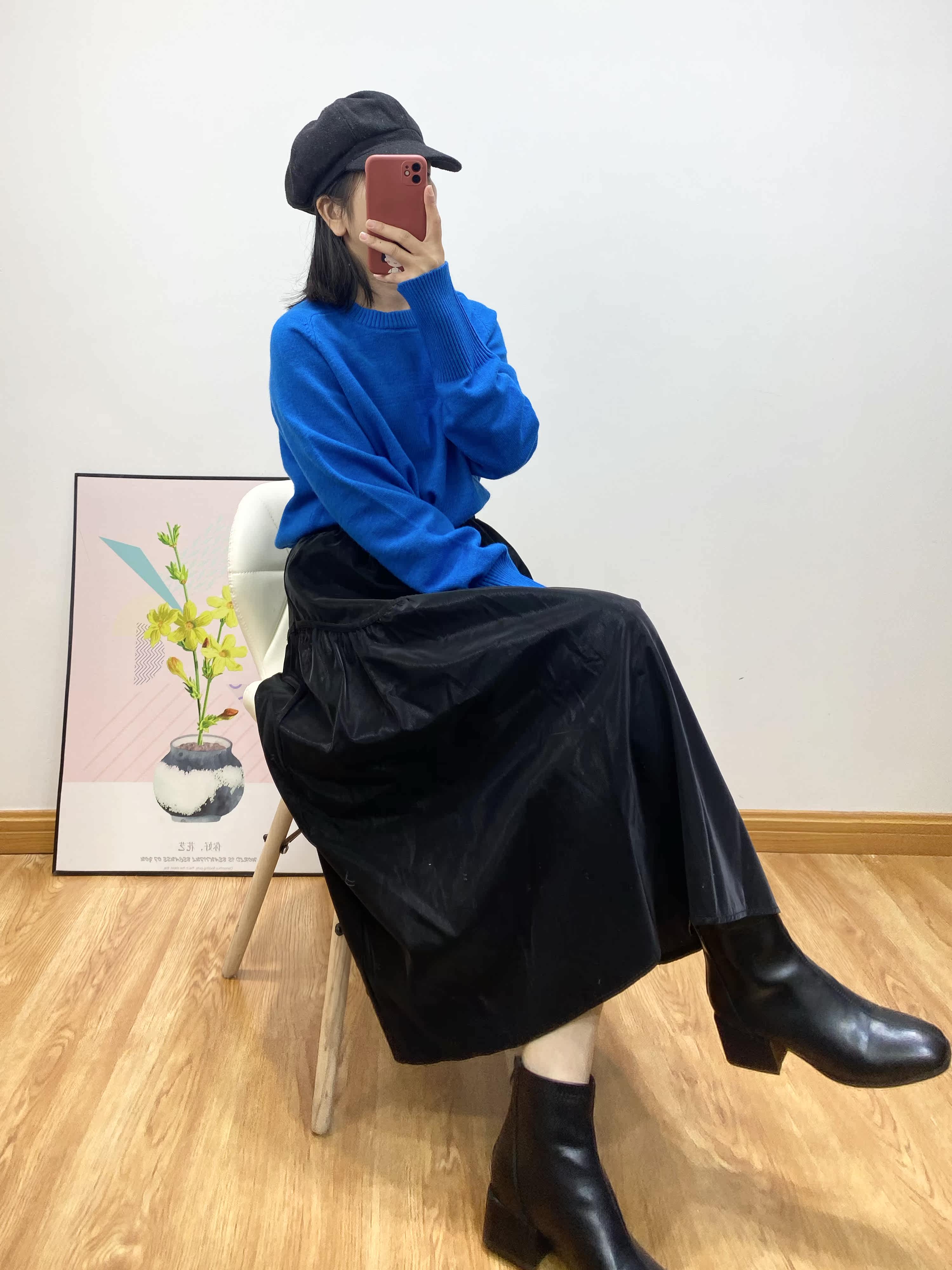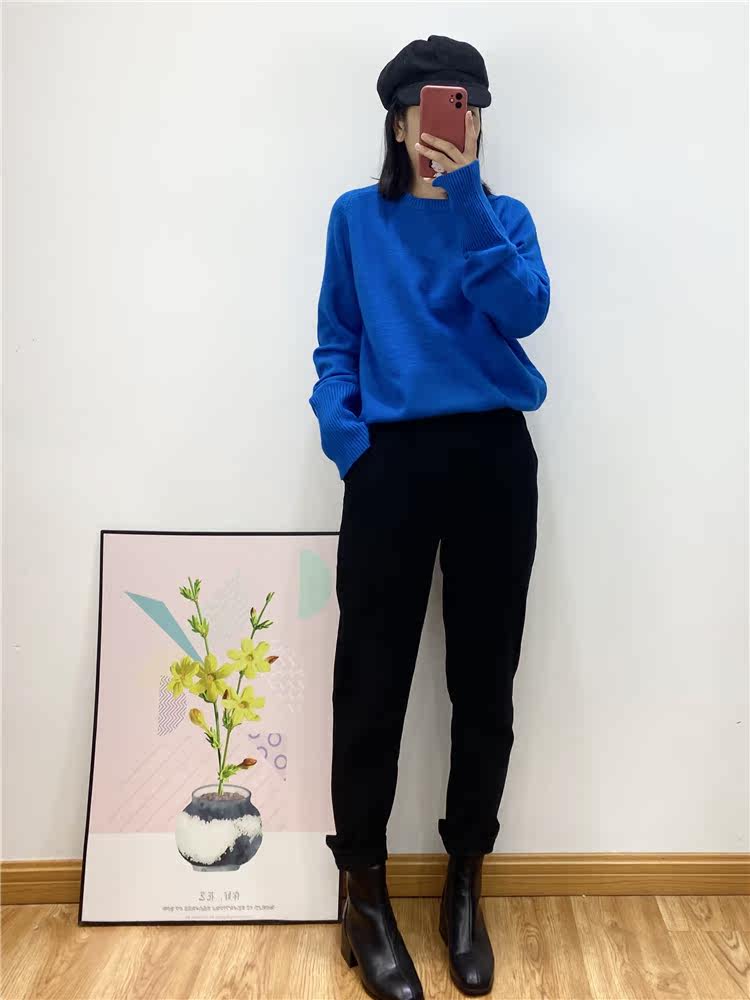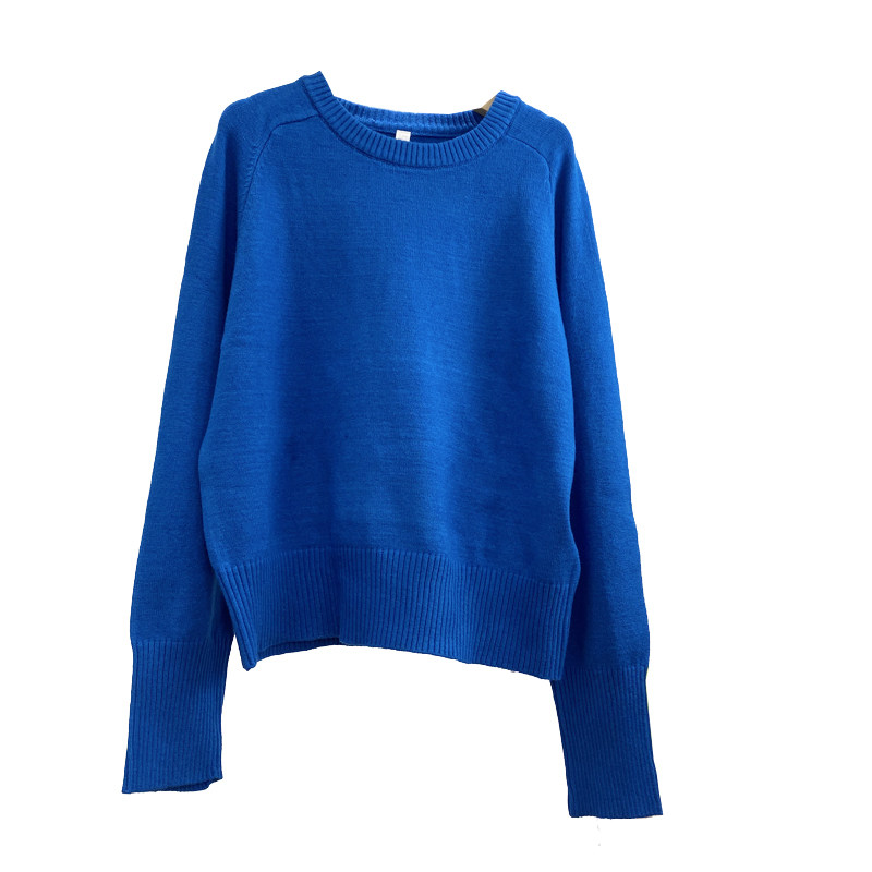 KRhine Blue white head lazy glutinous brick jewel blue loose casual and round knitting sweater