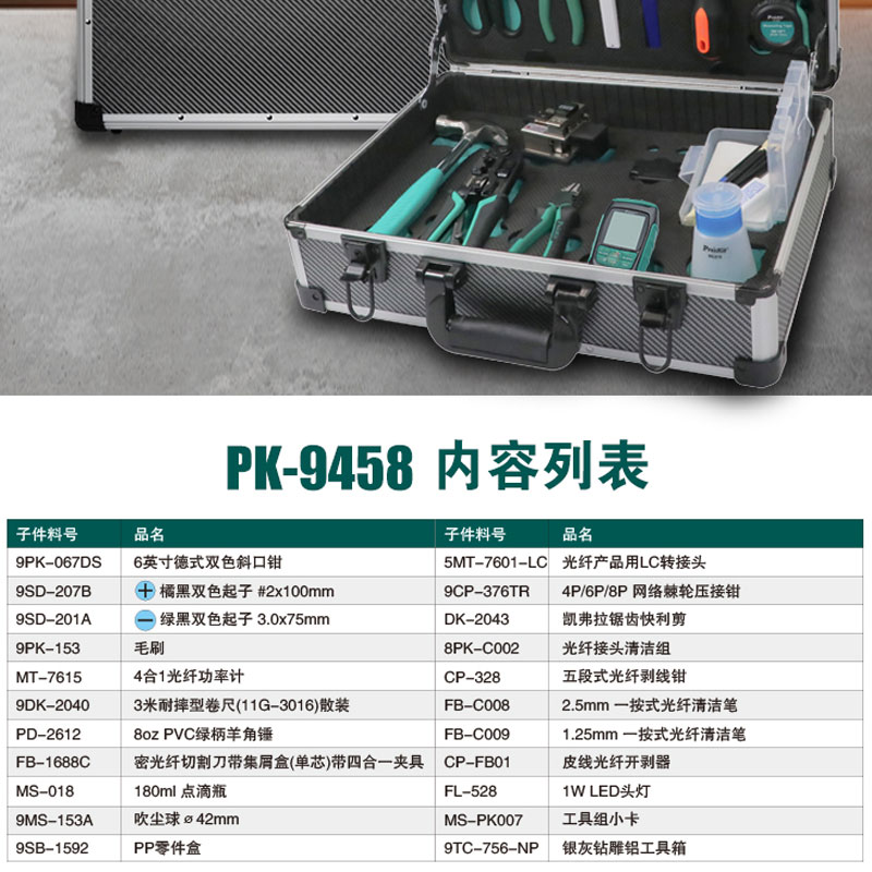 Taiwan's Baoworkers FTTX Professional Fiber 21-piece Tool Group PK-9458 Toolbox for PK-9471 Optical Power