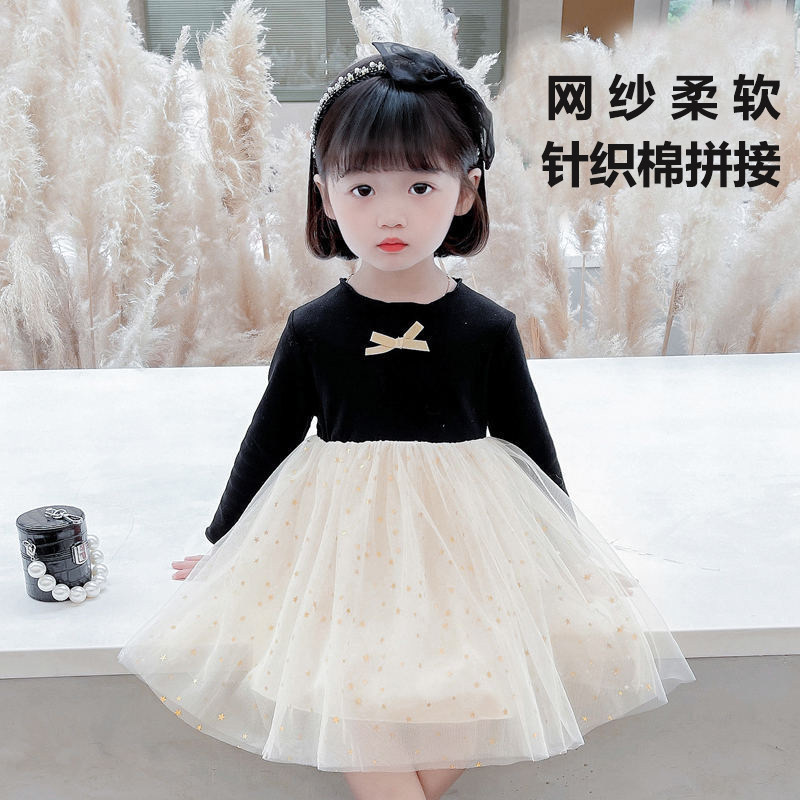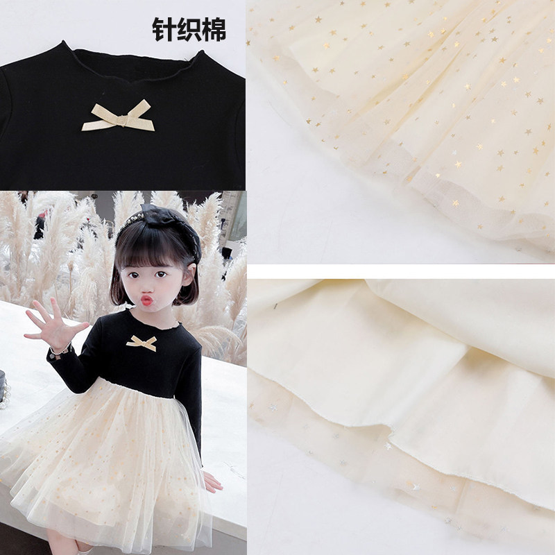 Girls autumn fluffy yarn princess dress foreign style super fairy yarn skirt female baby small and medium children Korean version long-sleeved dress
