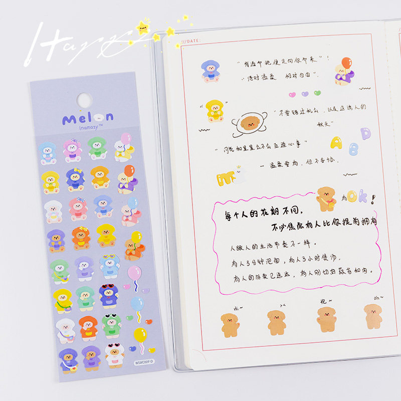 Orange fun buddy bear pasted green than bear likeness pasted pink letters than bear paste purple cute than bear patch bear suit 4 bears daily play A little bear daily play B bear daily play C smaller