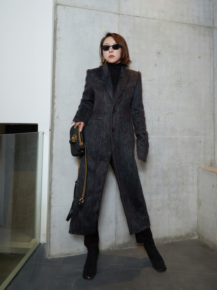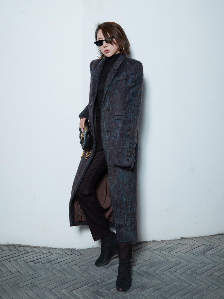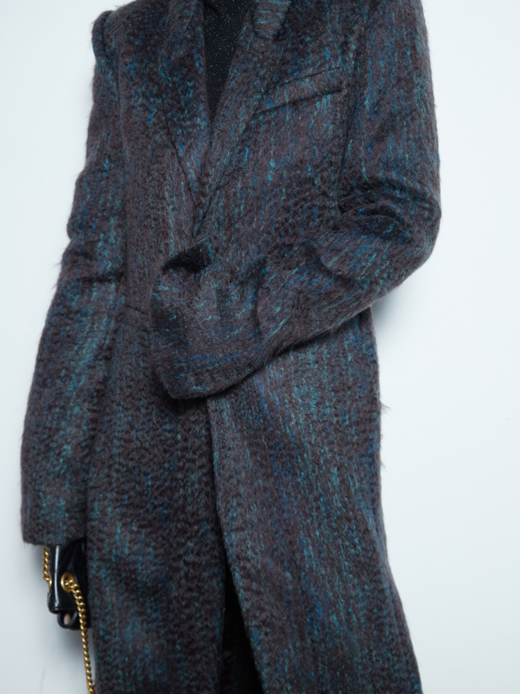 Boss Z Monet oil painting water ripple three-color blended mohair swallowtail coat mid-length woolen coat women's winter
