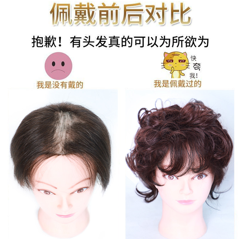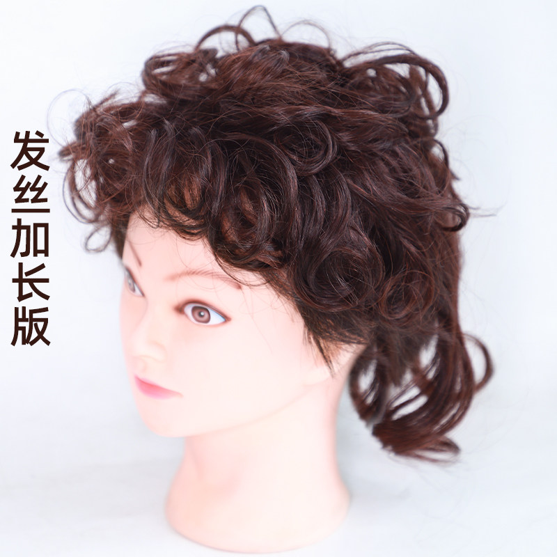Wig piece mother's hair on the top of the head replacement piece female artificial hair covering white hair fluffy unmarked short curly hair wig female head